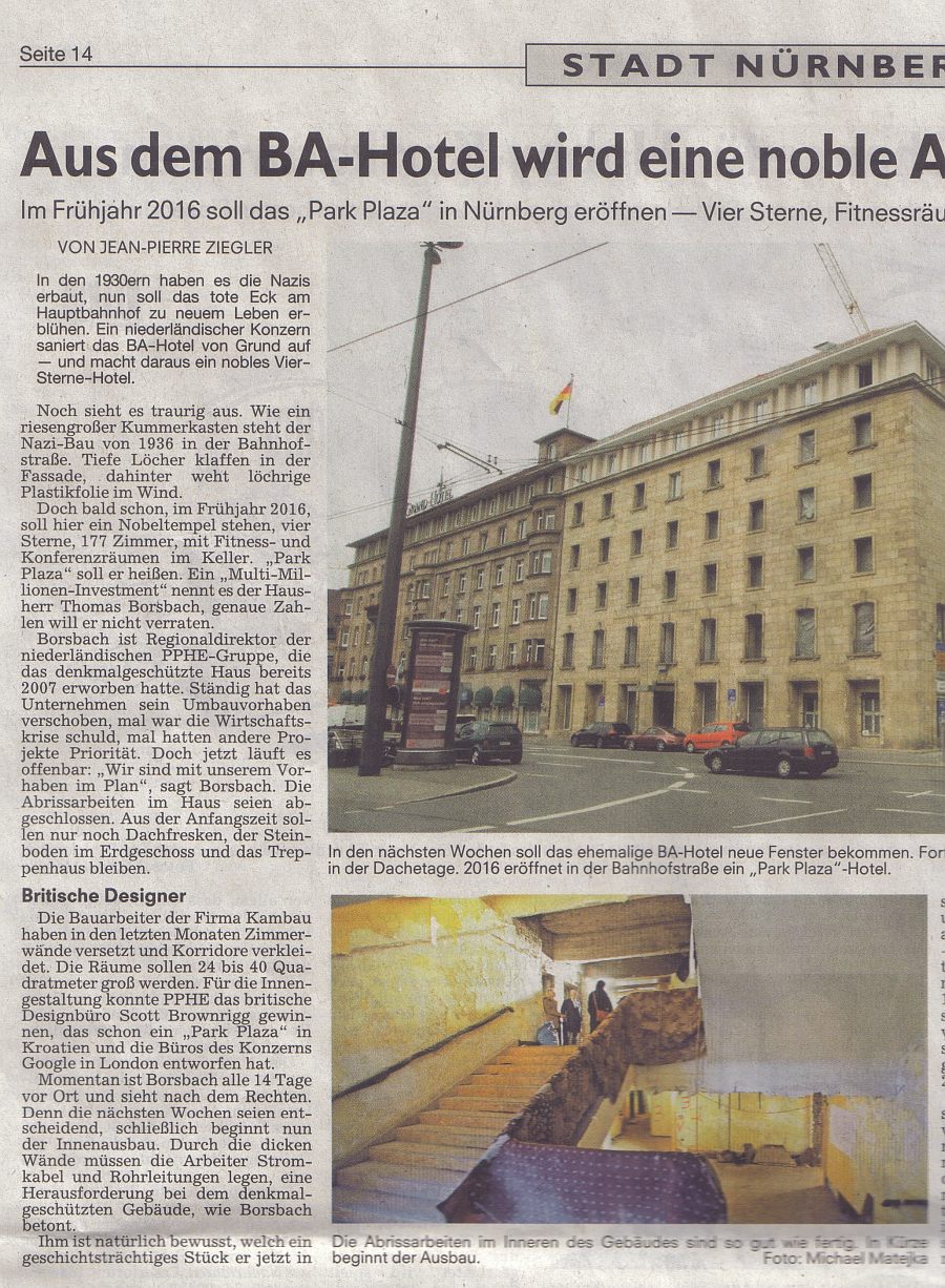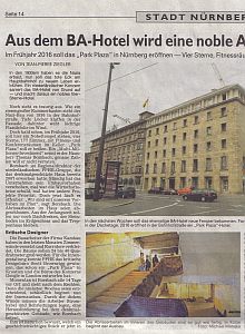 | 11 June 2015: The "Nürnberger Nachrichten" reports that the former BA Hotel is under renovation and will open in February 2016 as "Park Plaza". | ![]() | ![]() | ![]() Photos from 29 October 2015 |