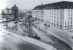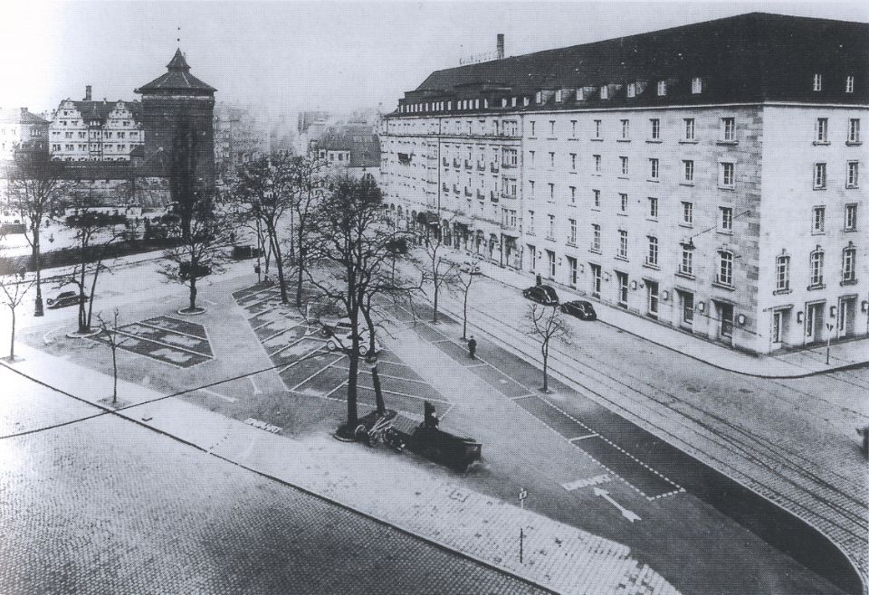 Left: About 1938: The left wing of the Grand Hotel is the newly built guest house of the Nazi Party (published in Zelnhefer: Die Reichsparteitage der NSDAP in Nuernberg - 2002)) |