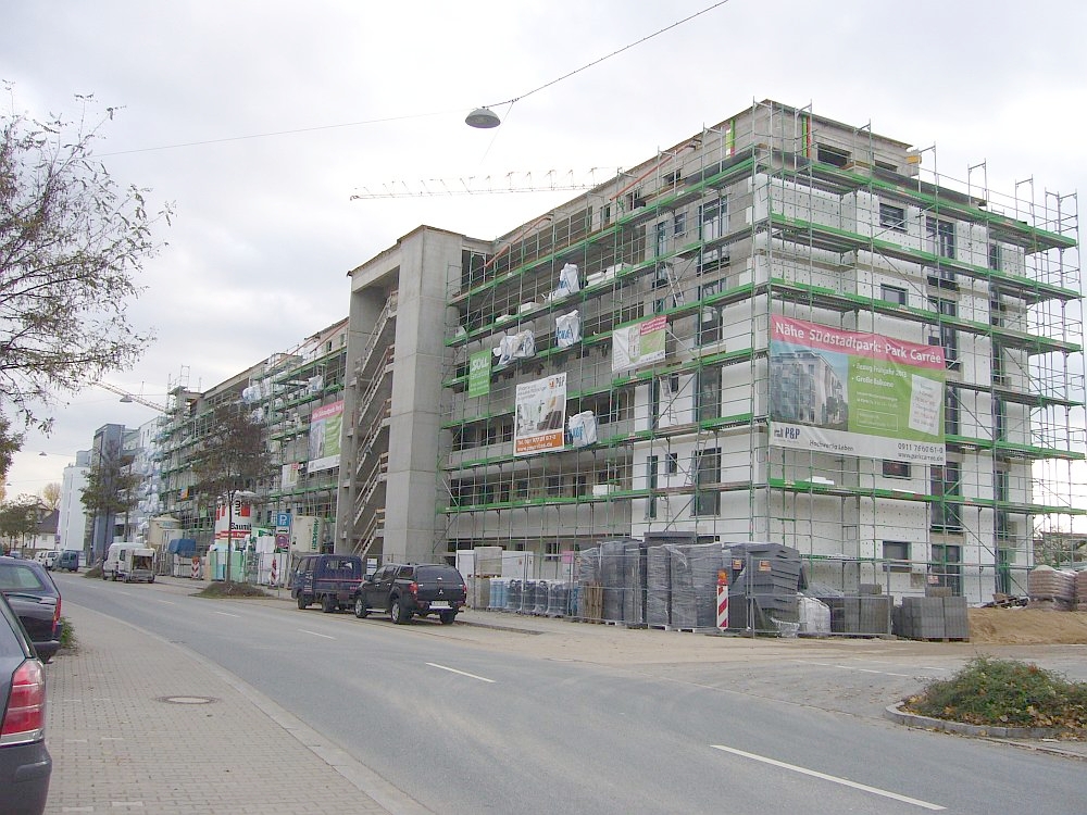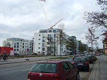 Photos taken on 10 April 2010 | ![]() Dr.-Frank-Straße with Bld. 1 on the left. | ![]() The parade ground will be filled with cubical-shaped buildings. Bld. 1 in the back. | ![]() Bld. 1 |