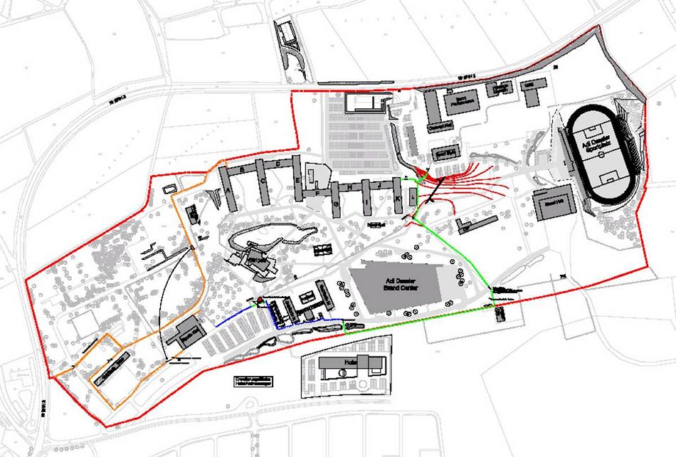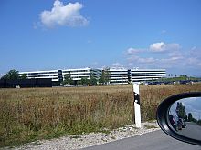 adidas Company has overtaken at least parts of Herzo base. The two E-shaped buildings (one on the far right) were connected by a modern glass construction (right). |