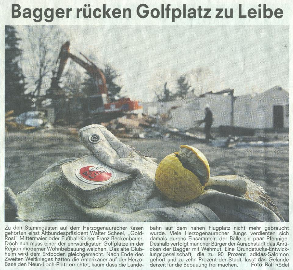 One of the oldest golf courses in the region is levelled and uses for buildings ("Fuerther Nachrichten" from 5 March 2004). | |||