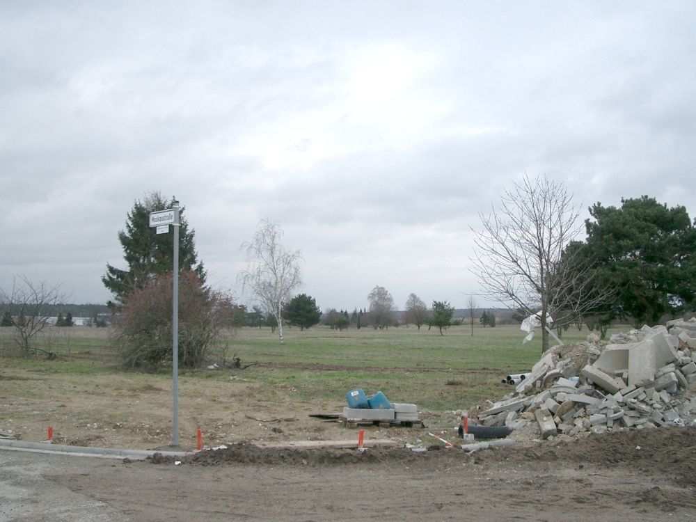 January 2005: The sky was very cloudy, so the photos aren't very nice. The entrance gate is gone (left). On the former golf course a housing are is under construction (in the middle). The roads on this housing area are named after cities who hosted Olympic Games. So you have the Moskow Road near the last reminders of the club house (right). |
