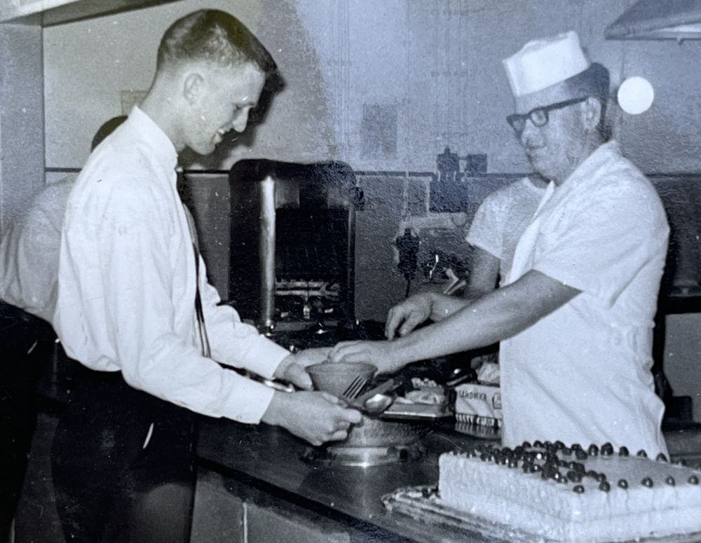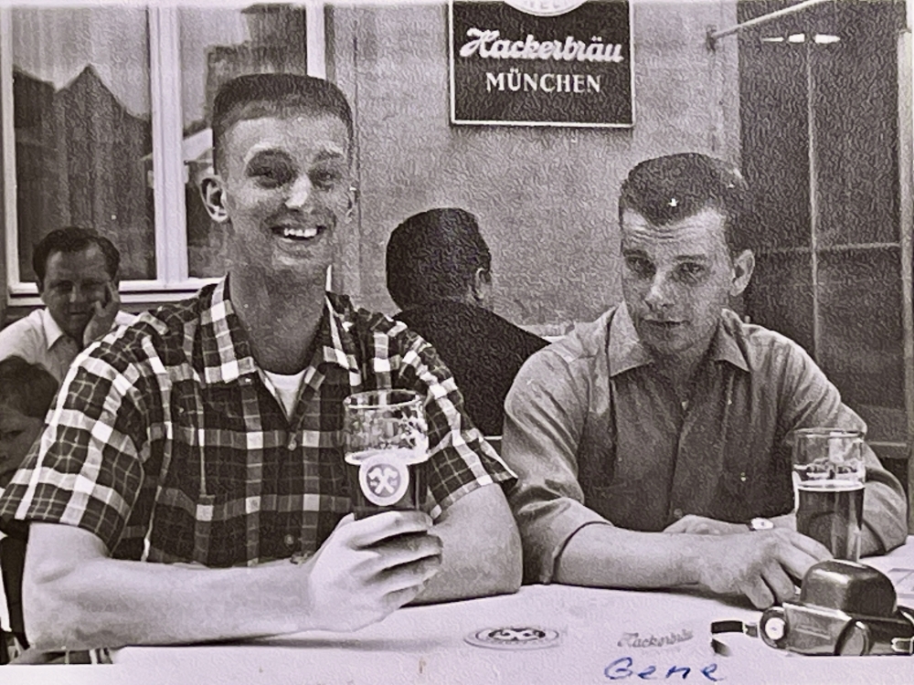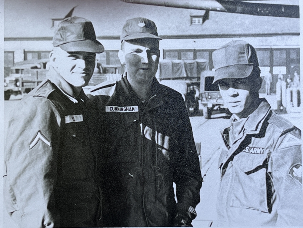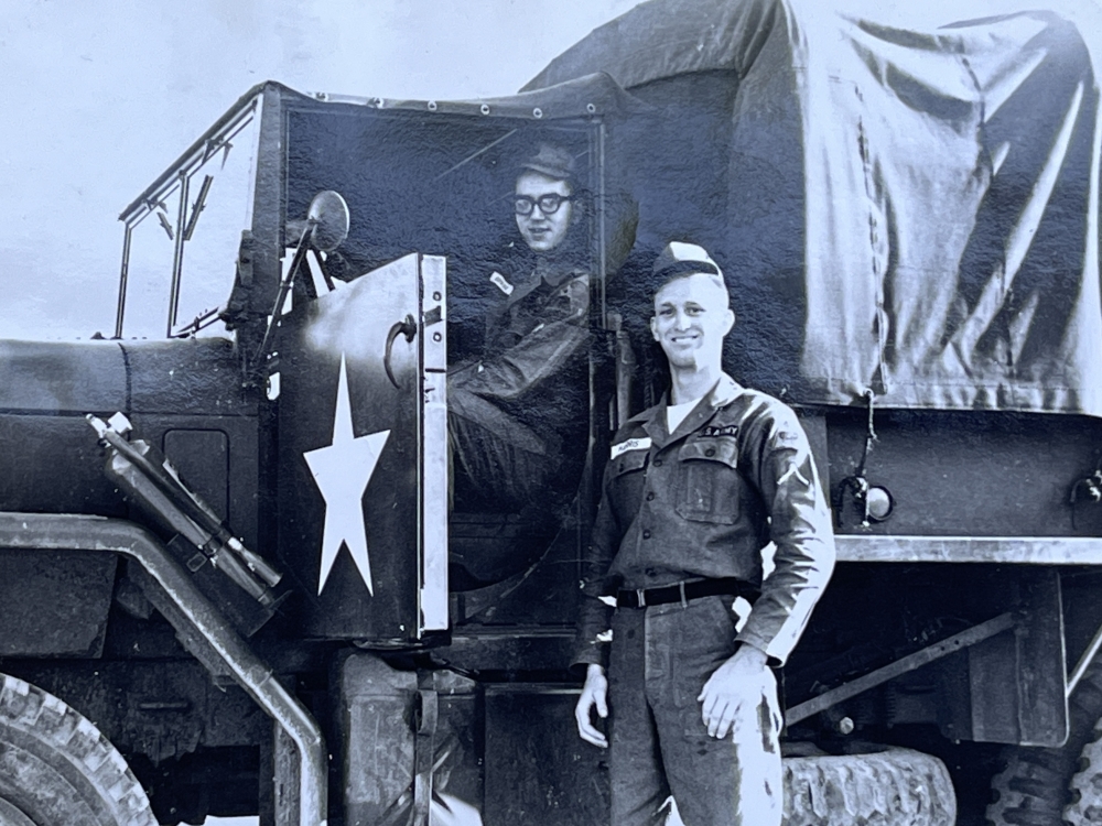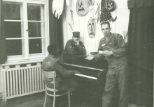 ![]() These are soldiers who worked at the warehouses. They weren’t part of 24th Eng. battalion, as you can see from the 7th Army patch on the sleeve of the soldier on the right. They were in some quartermaster unit and did not live at JB. Surprisingly I remember the names of these soldiers, Keel, Cunningham and Dishman (on the right). | ![]() PFC Robert Gosse and PFC James Harris with our assigned "deuce and a half “ (M35 2 1/2 ton cargo truck) with which we picked up supplies (food) from the warehouse and distributed to the 24th EB’s companies. | ![]() That's me with Gene Kuentzler (on the right). | ![]() An 18 year old James Harris on Christmas day 1964 in the Service Club at JB. |