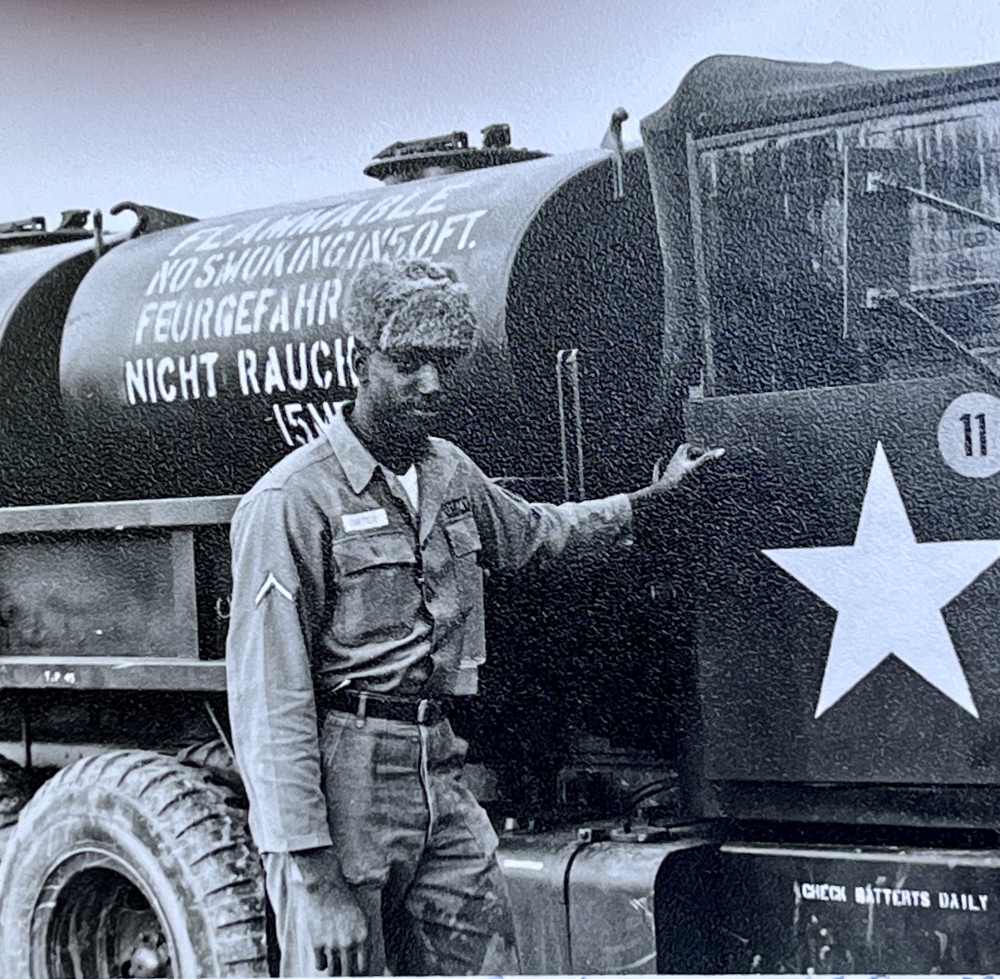 ![]() HQ barracks that I stayed in. Christmas day 1964. | ![]() 24th Engineer Battalion M60-A1 tank with dozer blade driving past the supply depot near Johnson Barracks. | ![]() | ![]() Sam Carter, fuel truck and driver. |