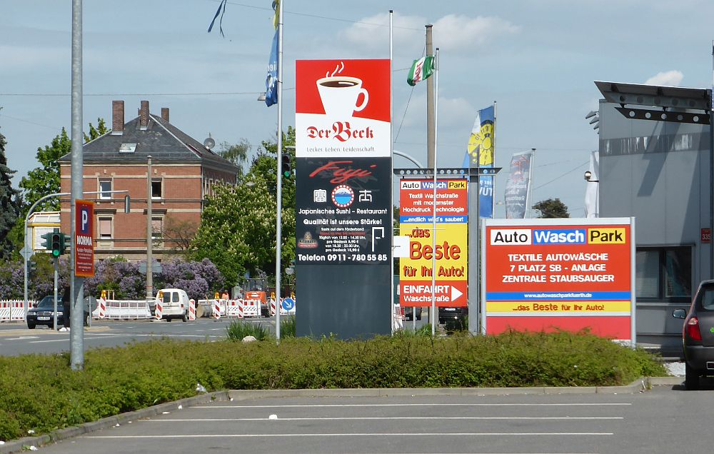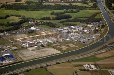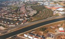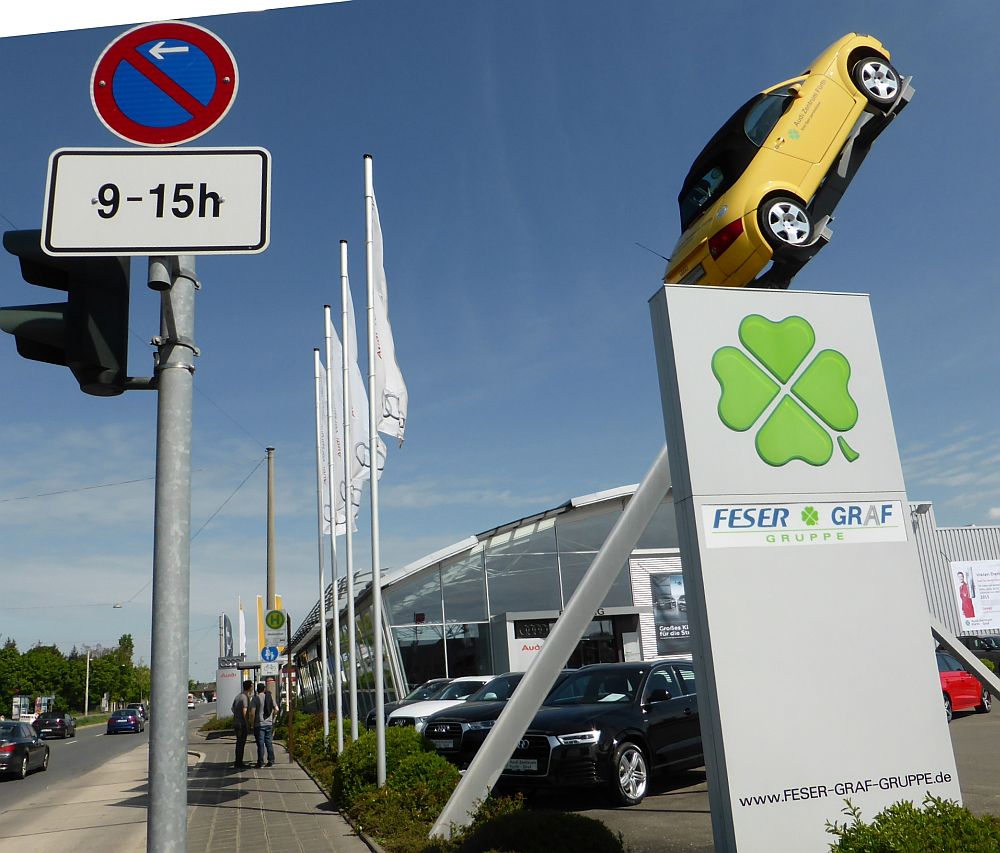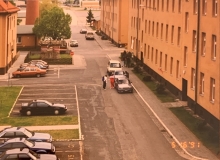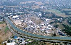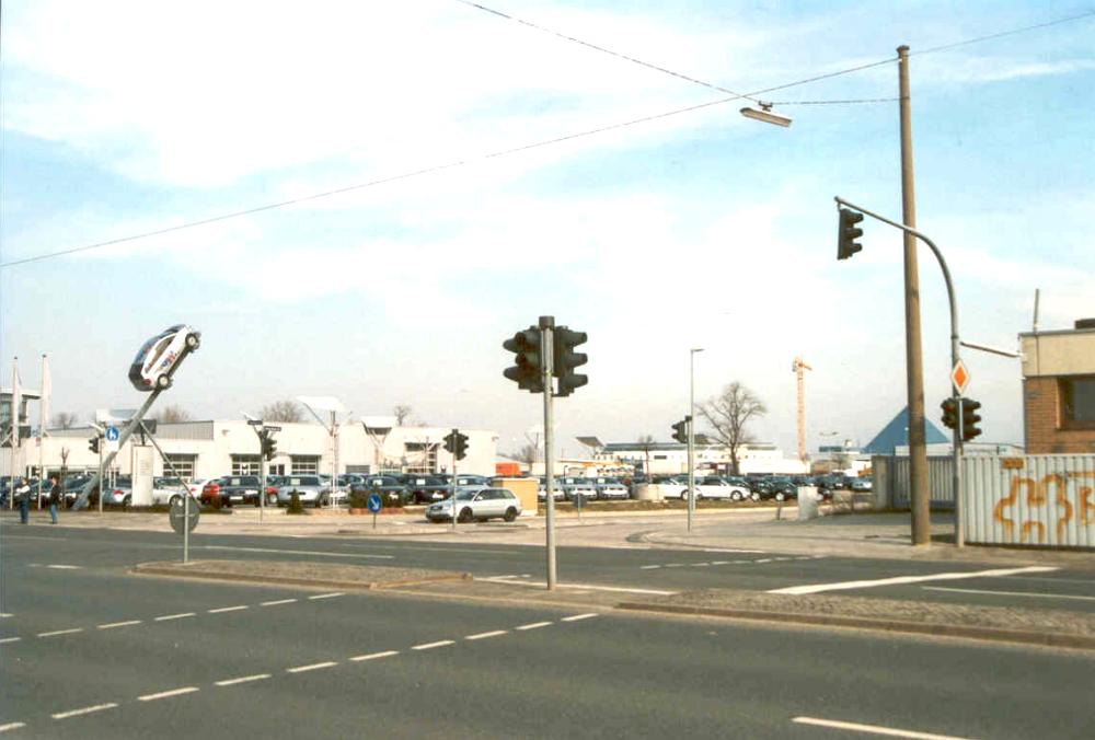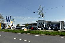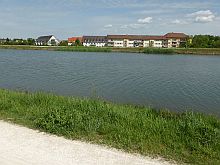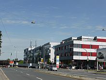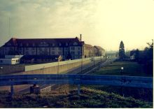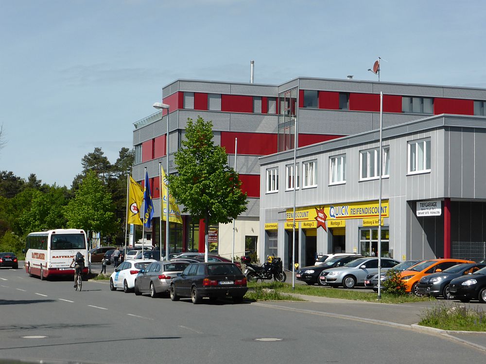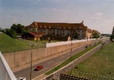 | The former Johnson Barracks has completely turned into an industrial area, focused on car business. It may take another year and all properties will be tilled. Photos from 8 May 2015. | ![]() Schwabacher Straße. The entrance gate of Johnson Barracks was in the middle. | ![]() View from the inside of the gate towards Schwabacher Straße. | ![]() The Kalb Housing Area seen from the top of the canal dam. |