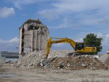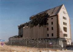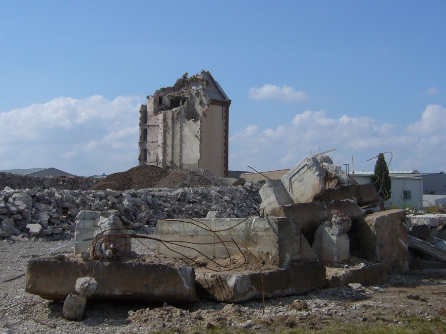 The last warehouse at Johnson (built in the 1930ies) was broken down in August 2007. Before it had been in use of the DRMO (Defense Reutilization Marketing Office). Picture by Gene Kuentzler (right) and by myself (all others, dating from Augst 13th). |