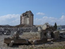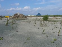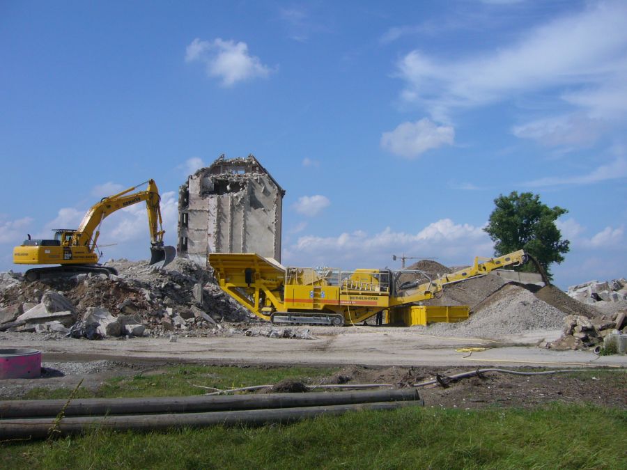 The material is being shreddered on site. Below: View to the north. The yellow containers are set down where the prison was located. |