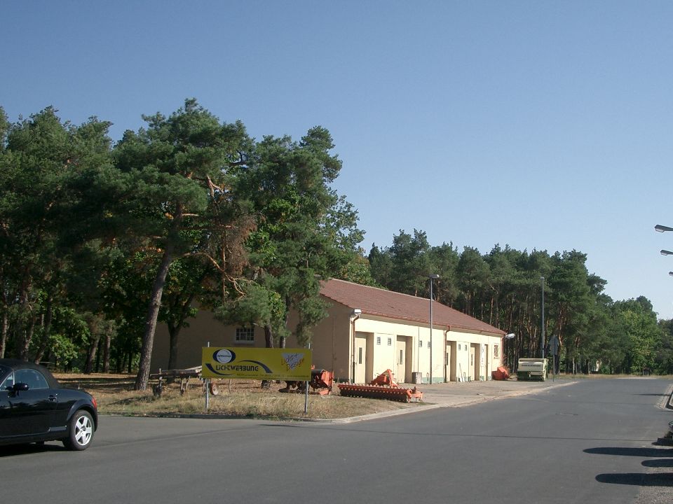 The entrance area. The building on the right is the old motor pool shed.