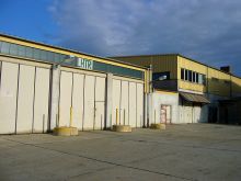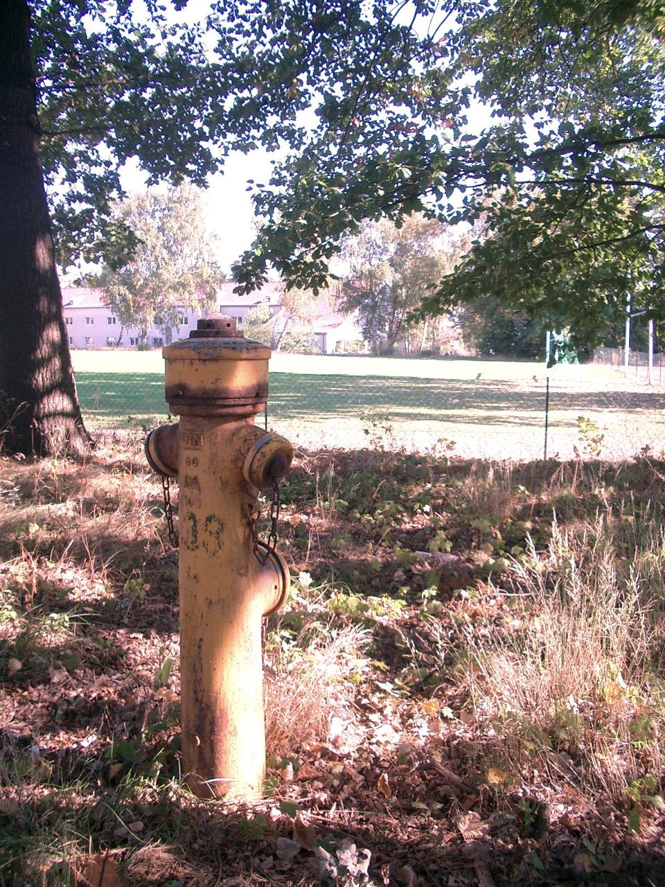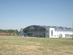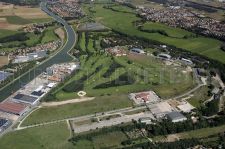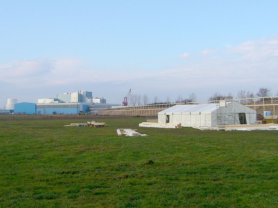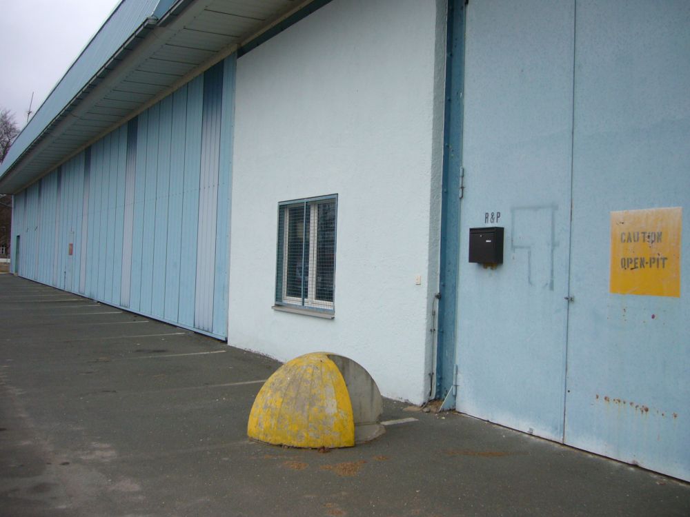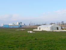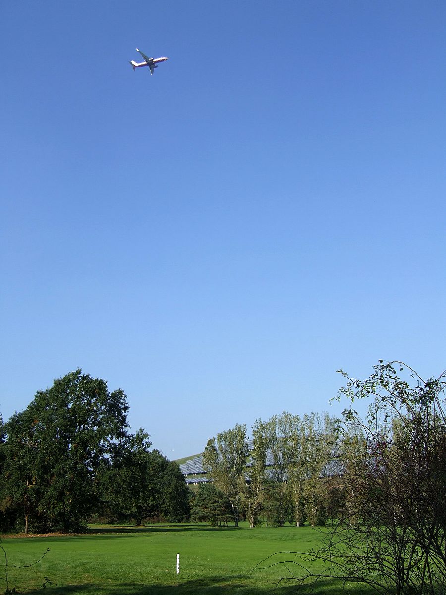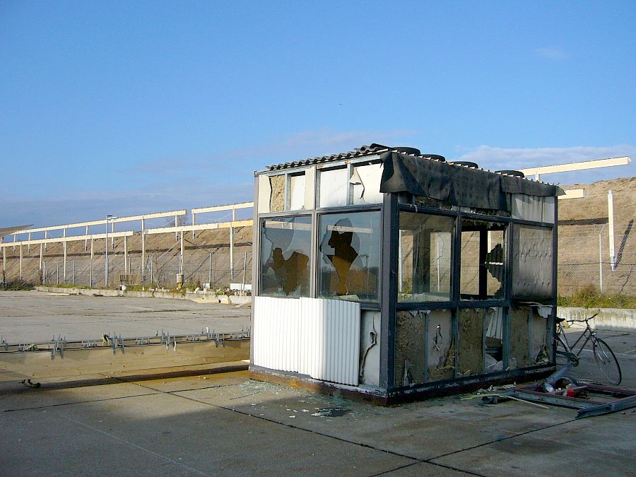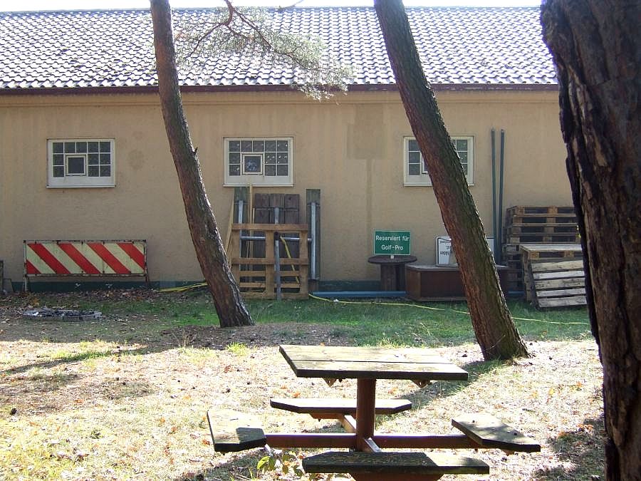 pictures from 17 August 2003. The grass is brown after a long, hot and dry summer. The greenkeepers of the golf course deserve their name. The storage areas are empty. One big warehouse (top) is renovated by Daum electronics. |