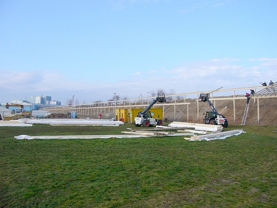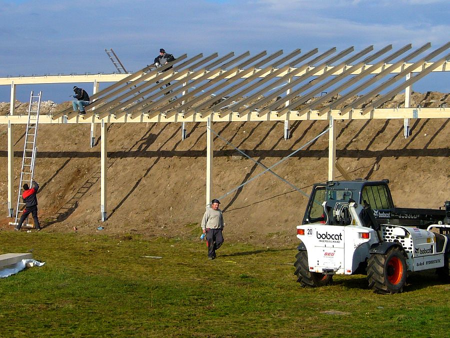 2006: Above the repair shop along the landing strip. The landing strip is completely covered with an earth wall that protects fairway No. 16 of the golf course. This wall will hold solar panels with 1 MW power output. |