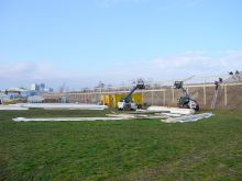 ![]() The old runway has been covered with an earth dam to separate the golf course from the rest of the area (left corners of the pictures above and below). |