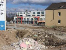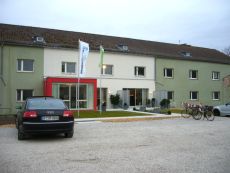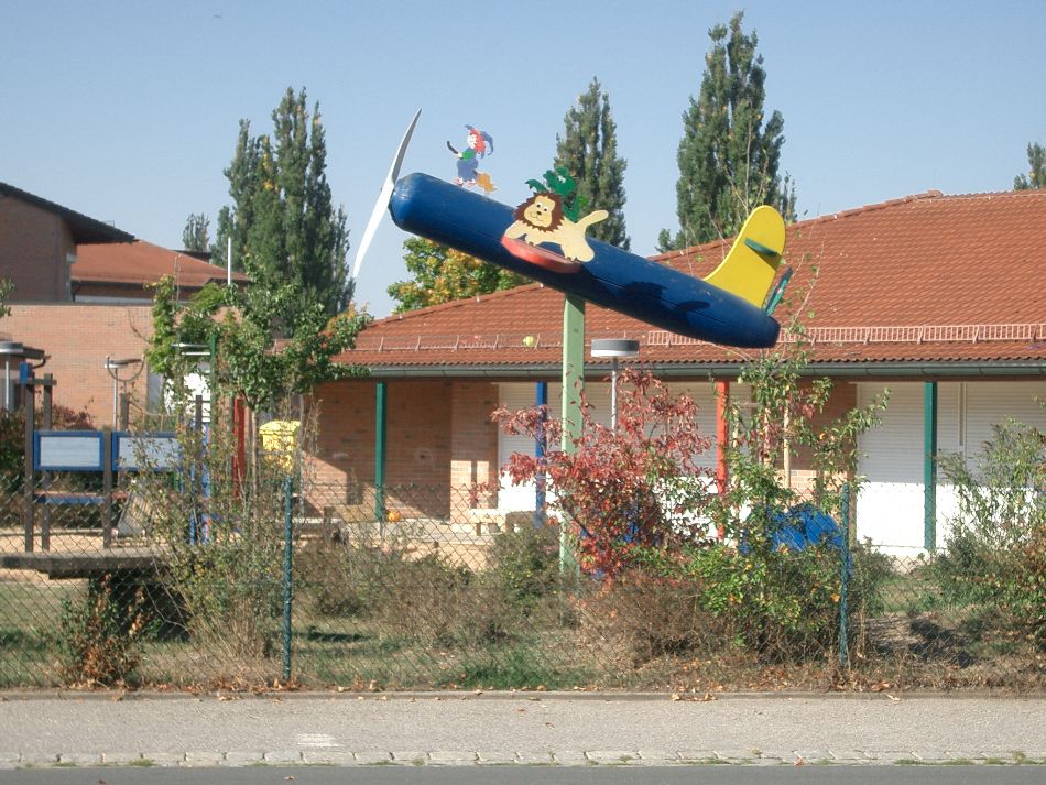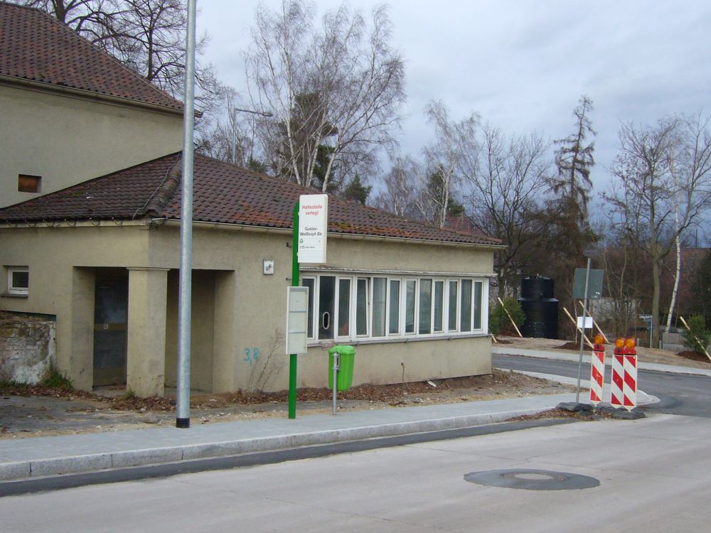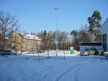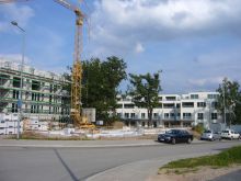 ![]() The street is named Willy-Messerschmidt-Straße. In the back: the former hospital. |