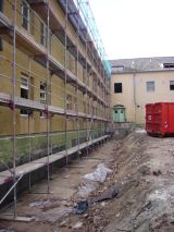 Above: 31 May 2008: The building left of the entrance gate. At the right edge stood the chapel. The area left of the entrance gate at Monteith is renovated now. The buildings are gutted. A real estate company will sell the appartments. |