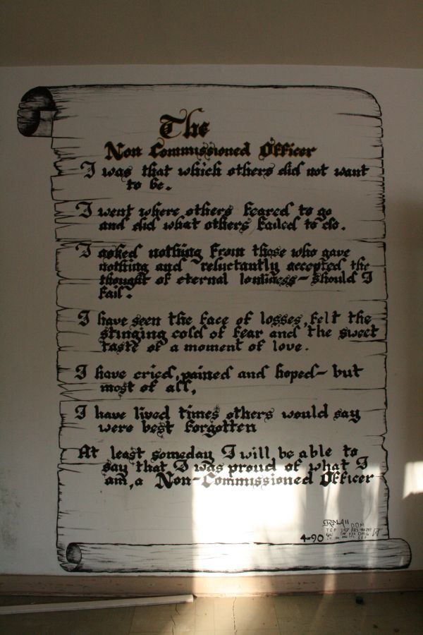 The more the conversion continues, the more the installations inside the buildings will be detroyed. Mrs. Renate Trautwein tries to record as many of the inscriptions and paintings as possible. She is also interested in the underground installations like bunkers and passages between the buildings. Who can contribute photos, information or contacts please e-mail to info@nbg-mil-com.de. Thank you. |