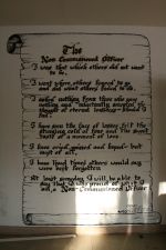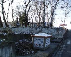 Left side of the entrance gate where the guard shelter stood. The chapel is used by a religious group. |