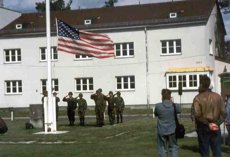 ![]() The Stars and Stripes is lowered for the very last time on 15 September 1993 |