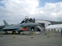 No panic: the German Bundeswehr doesn't take over Monteith Barracks! It just celebrates its 50th anniversary with an exibition there. The "Eurofighter" (right) is a mockup (the former airstrip is for a long time covered with an earth wall to protect the golf course laying behind) and even the German Navy (Bundesmarine) was opening an information tent (9-30-05 to 10-3-05). |