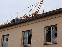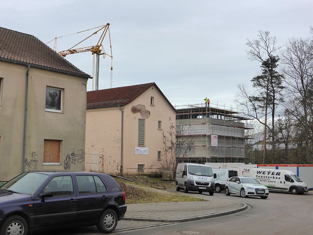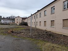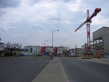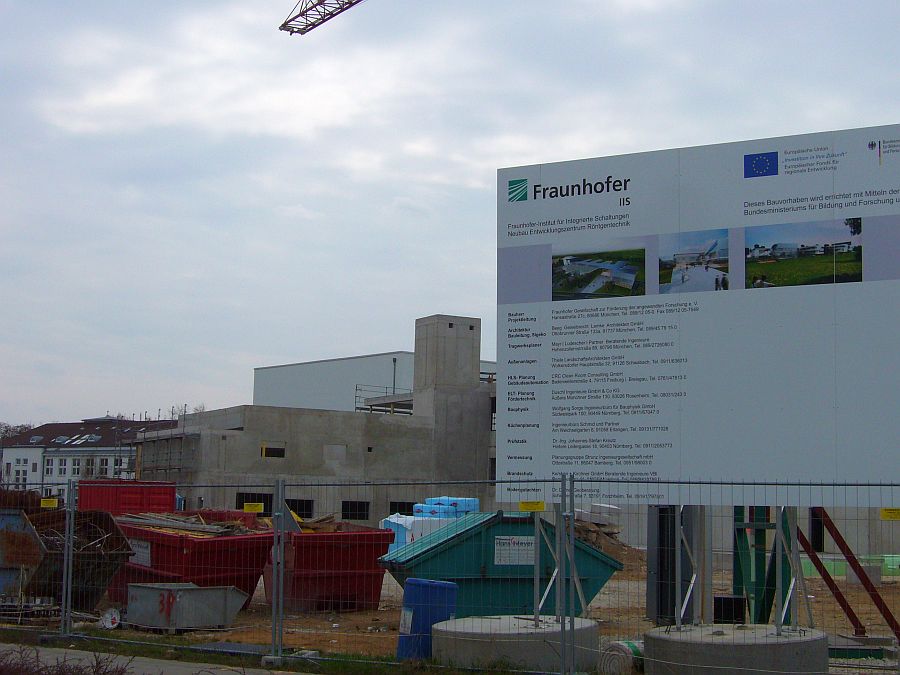 ![]() The construction of the Fraunhofer Institute on the right side. | ![]() The Fraunhofer Institute does scientific research for high resolution X-rays. | ![]() | ![]() The former Bld 285. The chapel was at the right corner. |
