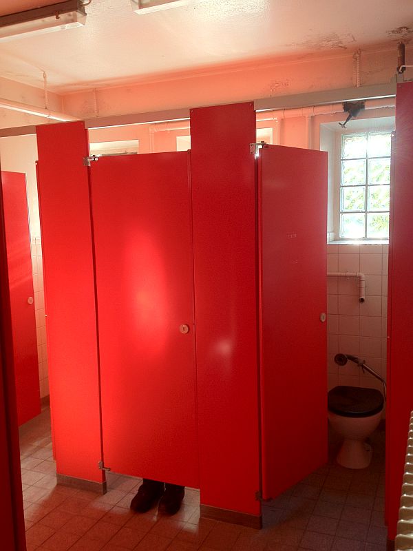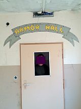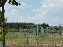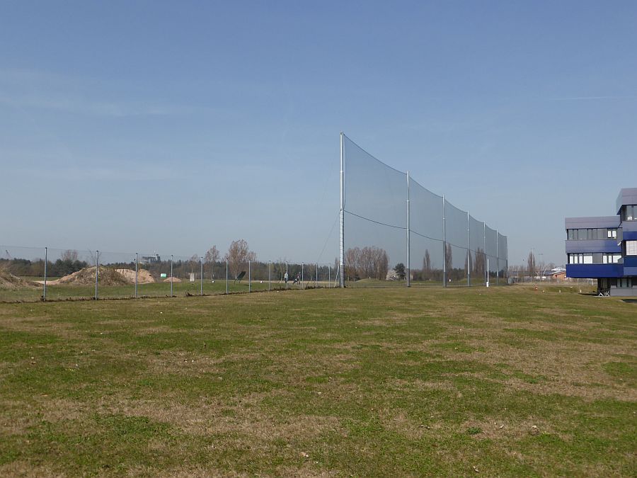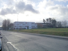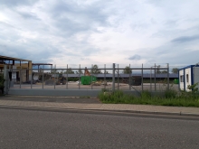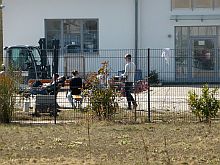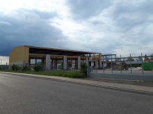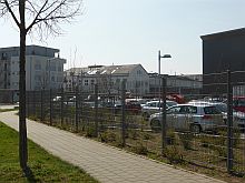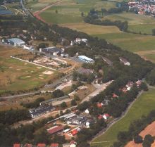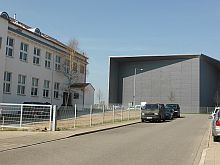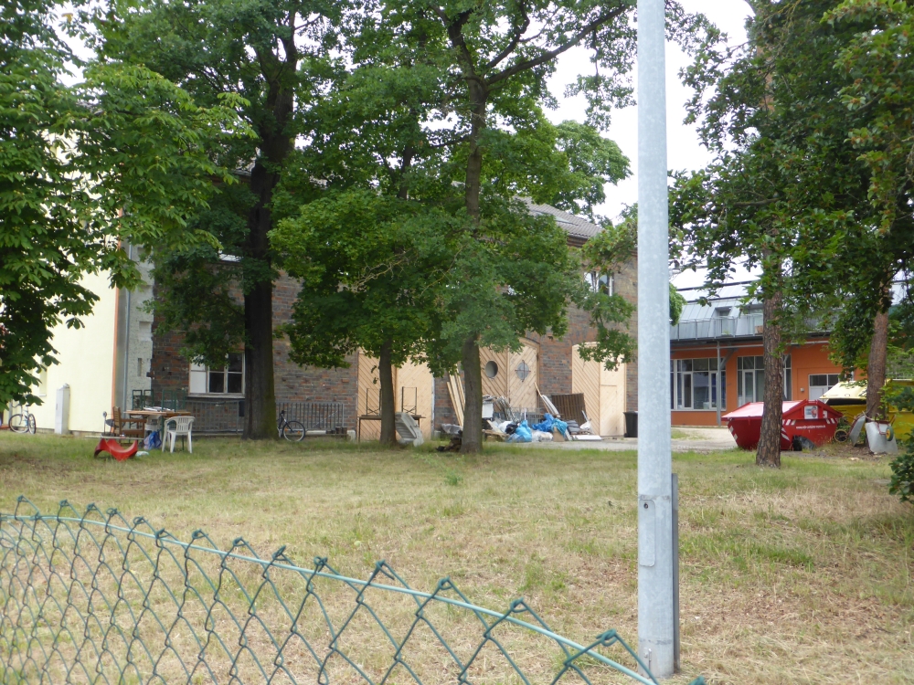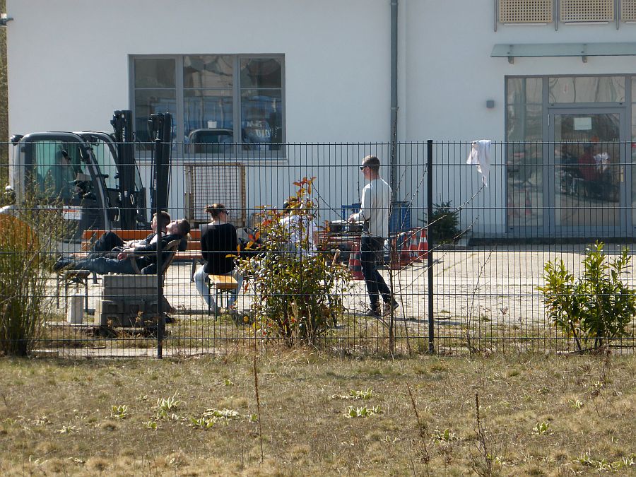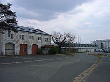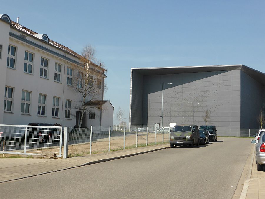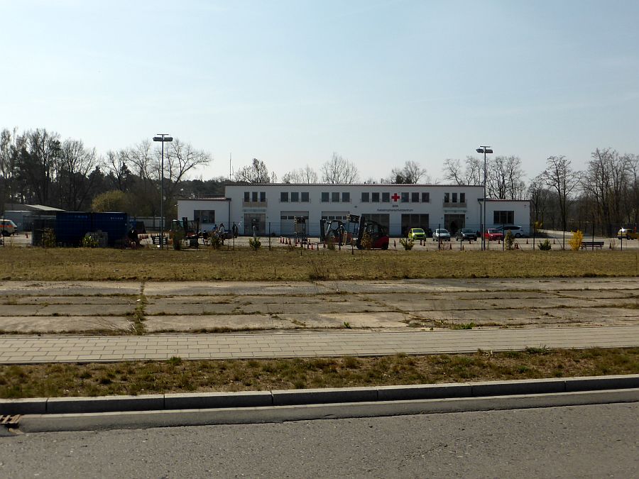 ![]() A big fence seperates the back of the Fraunhofer Institute against hole No. 9 of the short course. | ![]() In the front you see... nothing: the former tank washing bay. | ![]() BRK-(Red Cross) Disaster Prevention Center. | ![]() Lunch time at the BRK. |