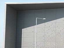 ![]() Nothing has changed near the former railway station. | ![]() A playground on the former telephone communication center. | ![]() The huge X-ray hall of the Fraunhofer Institute for Integrated Circuits is used for radiographing big objects. | ![]() The wall has a pattern of stars which are illuminated at night. |