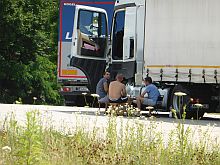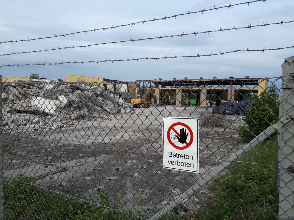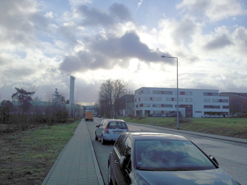 ![]() The big hangar on the right side, the big Fraunhofer Institute X-ray chamber on the left. | ![]() Big areas for relaxing truckers. | ![]() A miscellany of renovation, modernisation and Bratwurst. | ![]() The first car dealer at Monteith. |