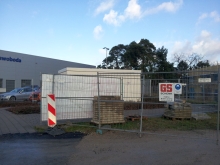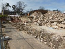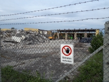 ![]() The former guard house at the main entrance is removed, 28 March 2019. | ![]() | ![]() | ![]() |