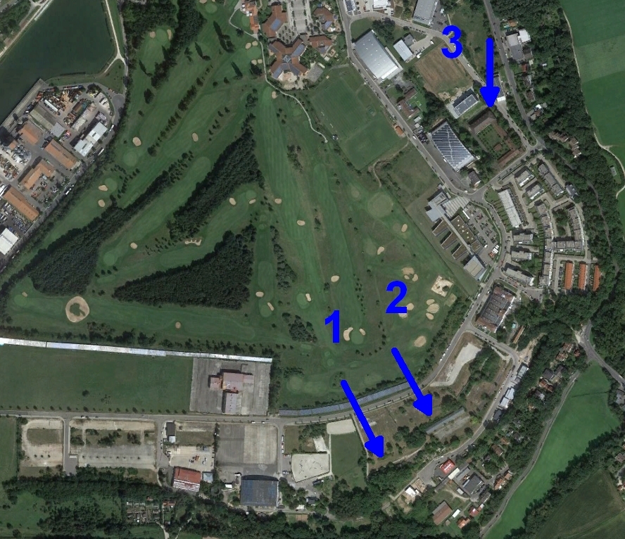 ![]() | ![]() Photos from 27 January 2016. Numbers are referring to the position on the map on the left. (1) | ![]() (1) Along fairway No. 8. | ![]() (1) |