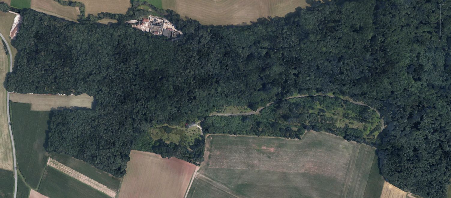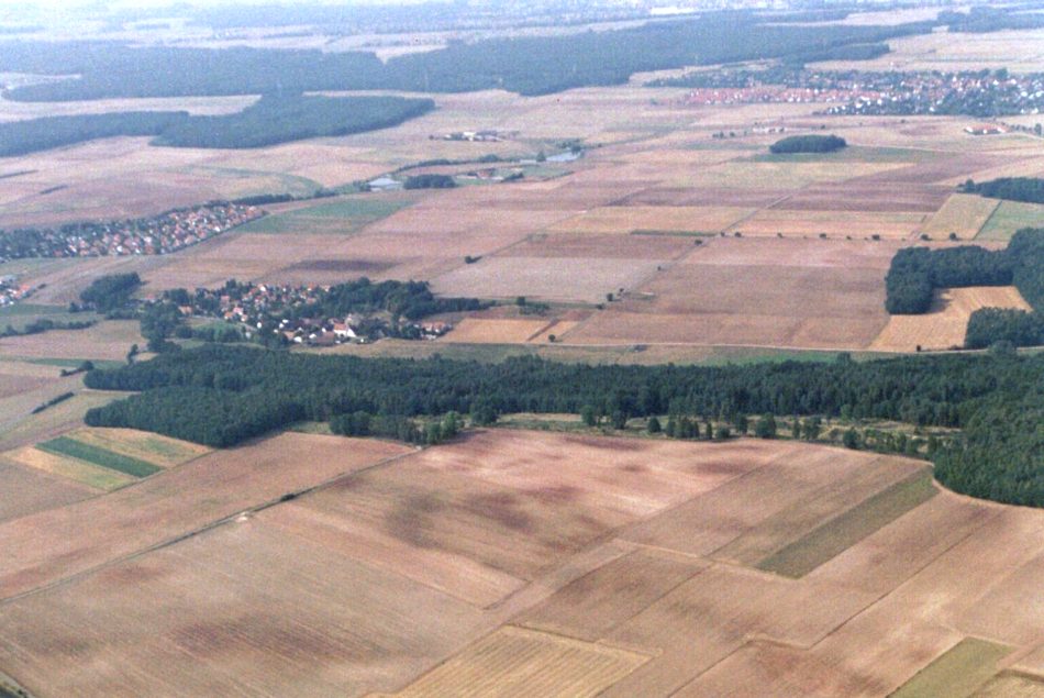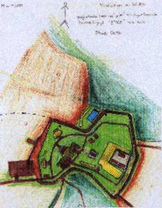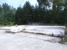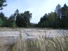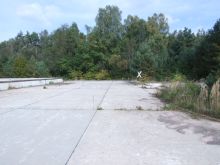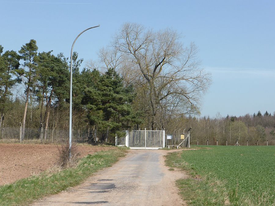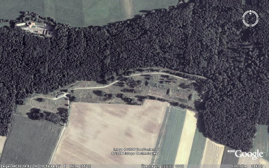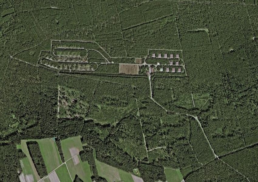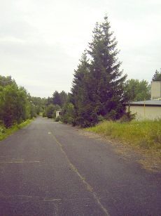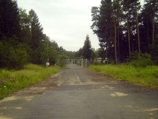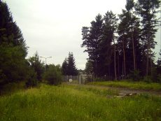 ![]() Areal picture from 17 August 2003. From the left lower corner the access road leads to the former entrance gate. Behind the forest the village of Kreppendorf. |