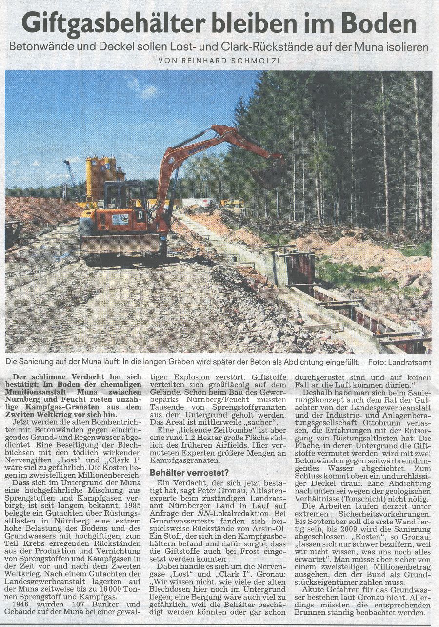 Poison gas shells are still in the ground of the area south of Feucht