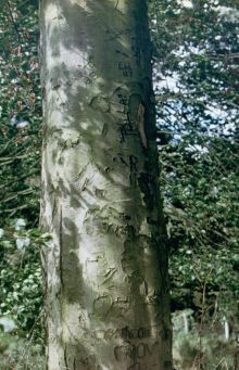On the left: the gate on 1 August 1993. Far left: GIs had engraved their initials in some trees inside the storage area. |